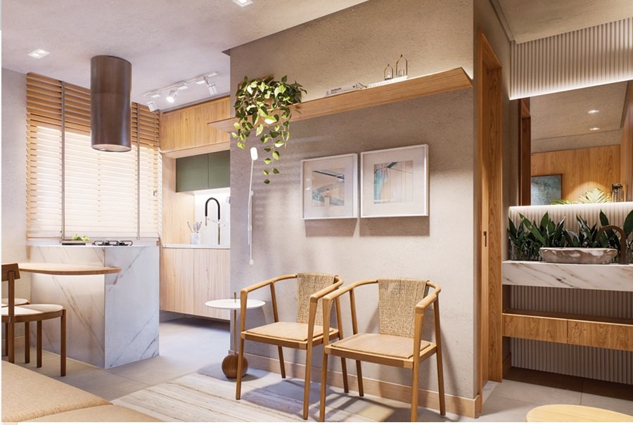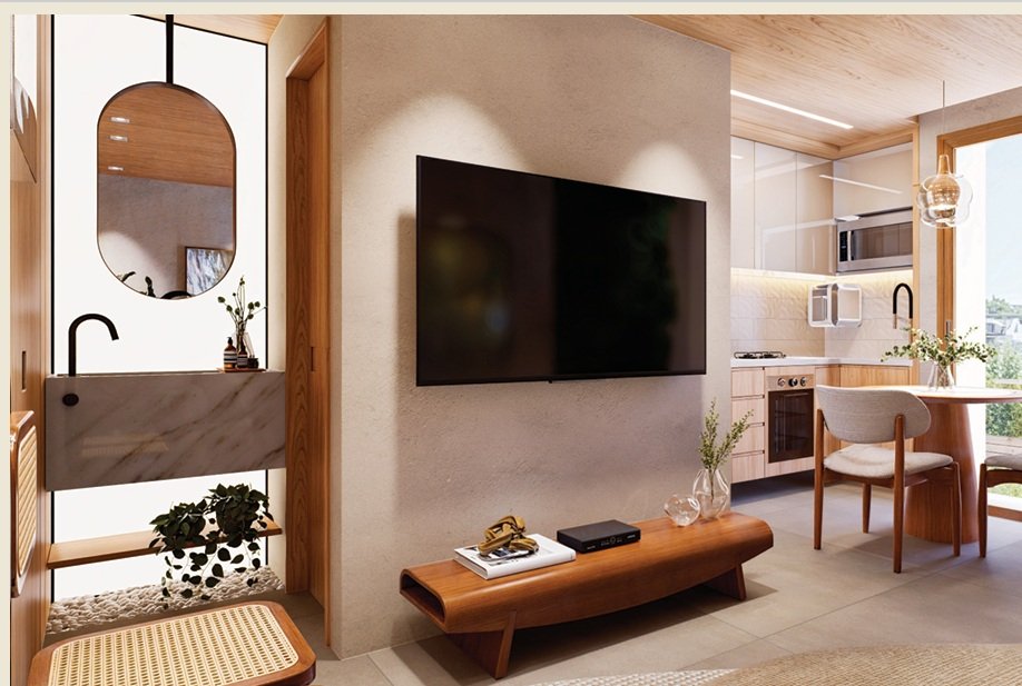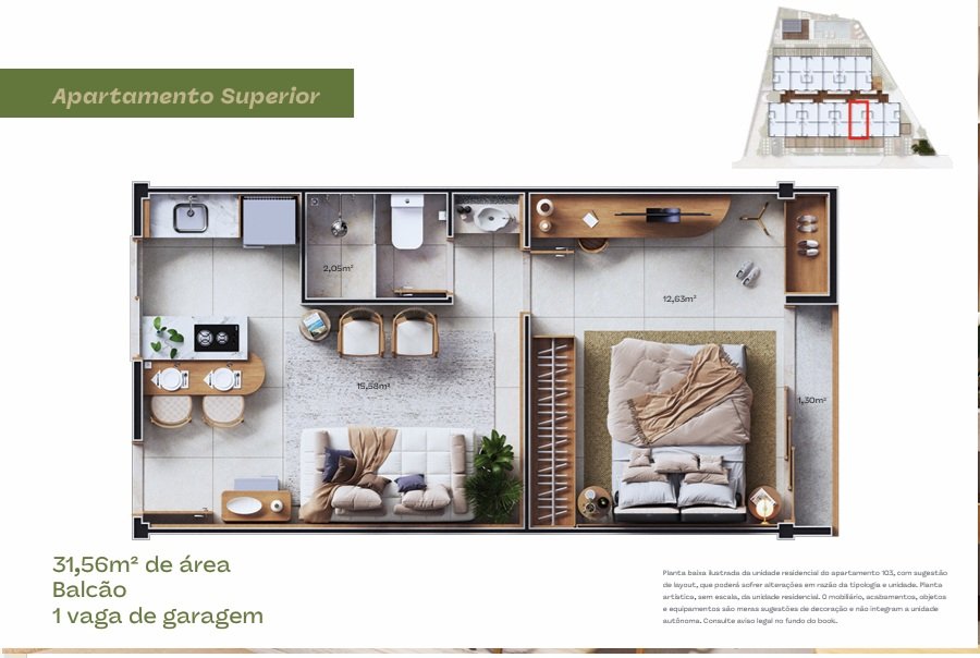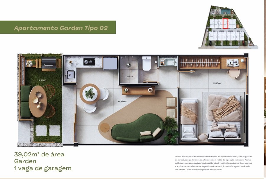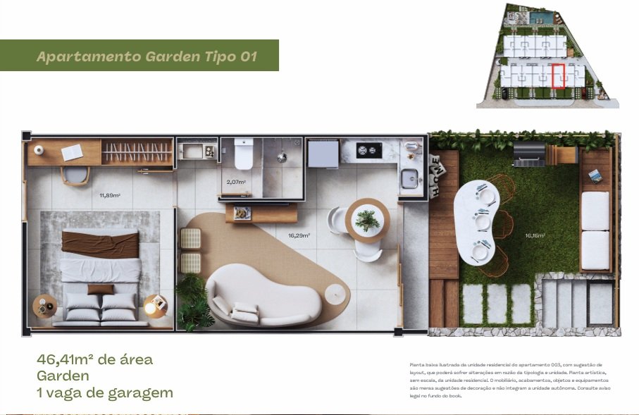 Apartamentos 1/4 com garden privativo ou varanda.