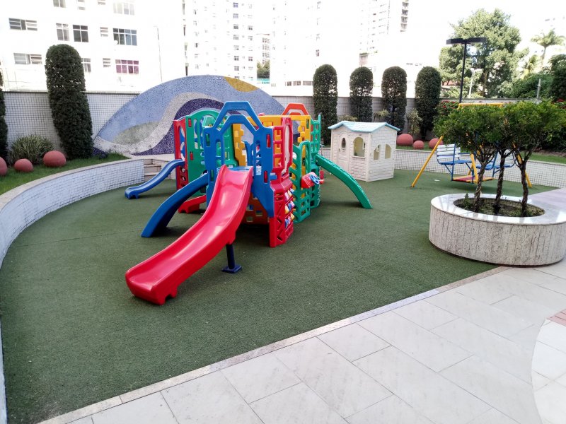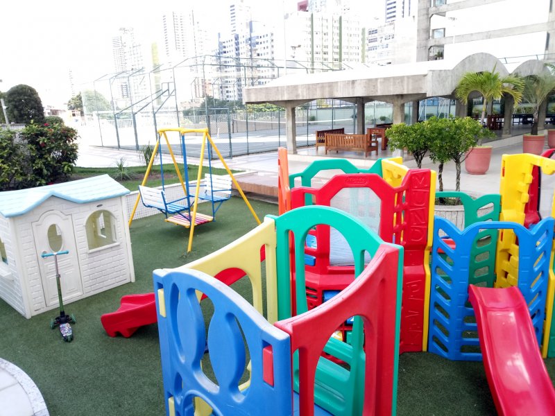 O prédio dispõe de salão de festas, playground, quadra, parque infantil, .....Portara 24 horas e circuito interno de segurança.